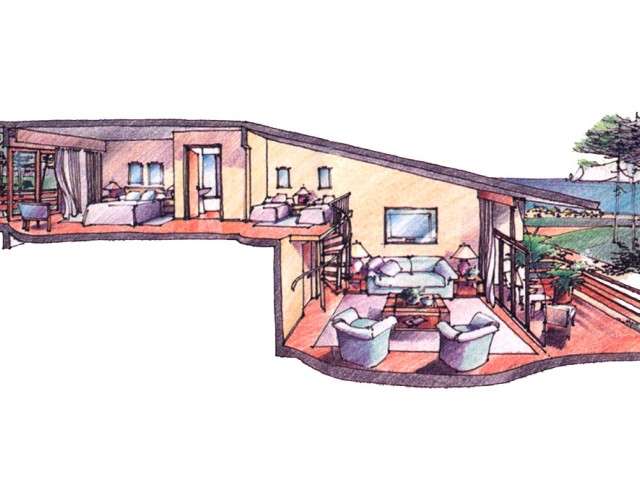 Duplex H30 is a 60 m² apartment arranged in two storeys. It has room for four people but it can be extended to six. The ground floor apartment has a spacious living room and a comfortable balcony which has a set of table and chairs and provides an excellent view of the sunset. Through the spiral staircase you access one bedroom which is constitued by two twin beds, and to the main bedroom which leads to a spacious balcony with a view to the Punta Ballena bay and to he pool garden. The bathroom is located between the two bedrooms and has gof a comfortable bathtub.