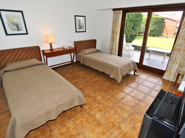 Upper Double H16 is a spacious bedroom for two. It has 36 m² and it is located on the ground floor of the hotel. It features two comfortabe twin beds, a private bathroom with a bathtub and a spacious balcony with a view to the garden of the pool and to the Punta Ballena bay. The bedroom's layout and equipment together with its surroundings and the spacious variety of services will allow you to rest and enjoy your holidays.
